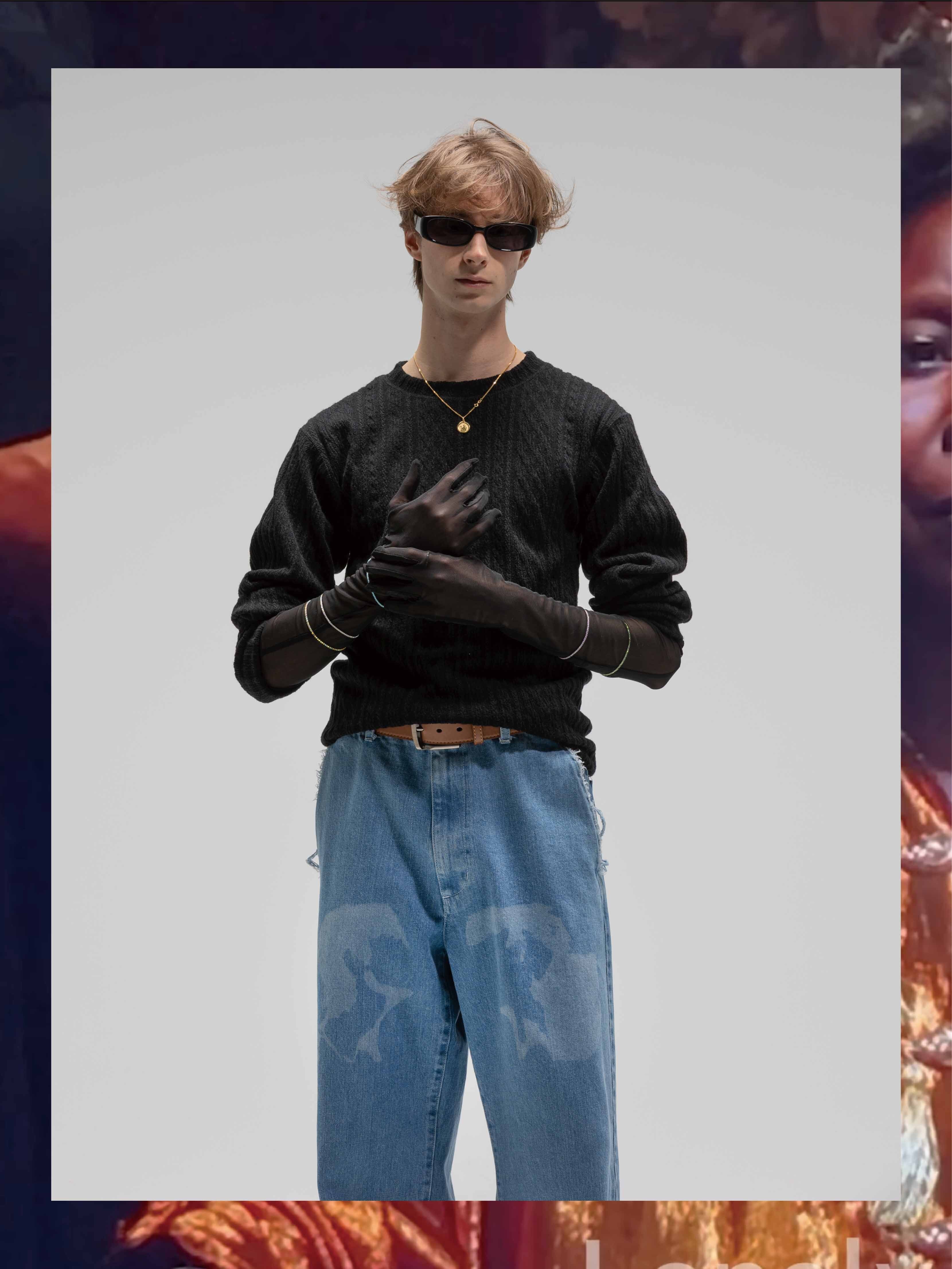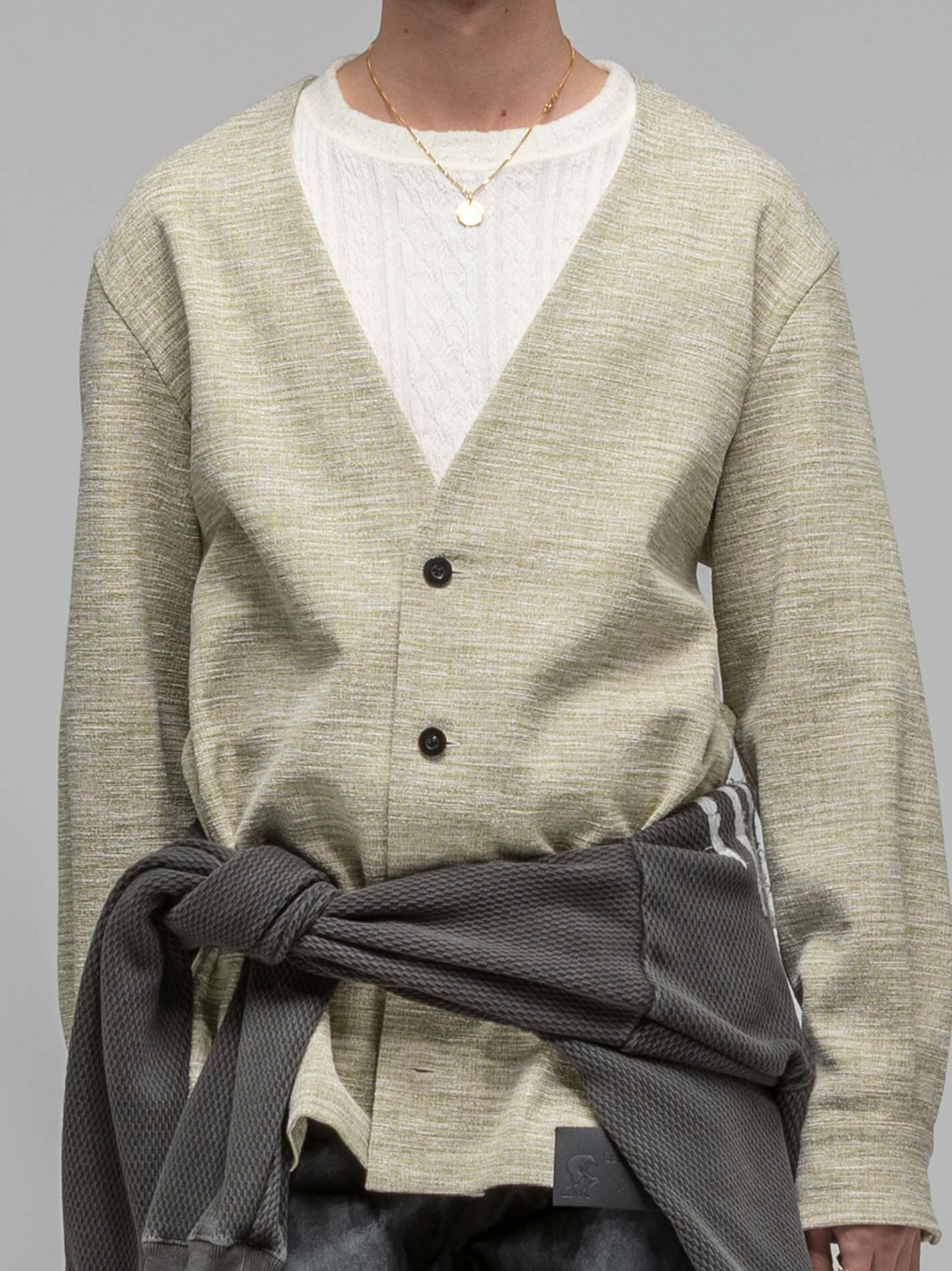 主に秋冬時のインナーとしての着用を想定したジャストフィット仕様だが、表情のある生地感のため単体でも存在感のある一枚。
